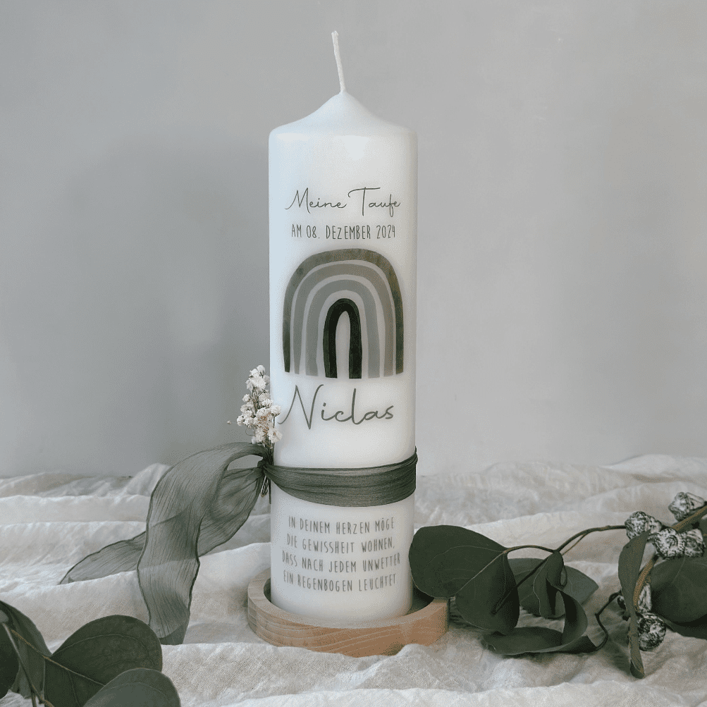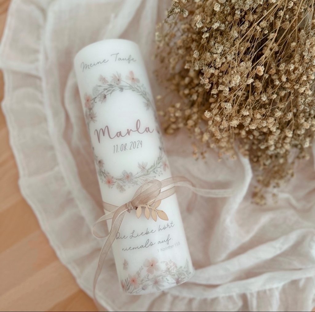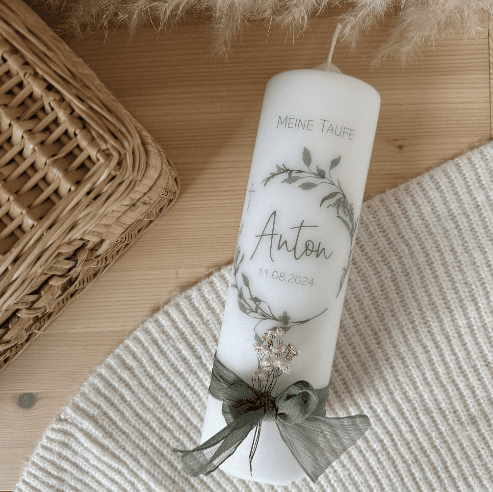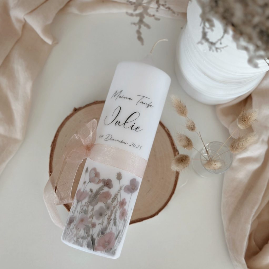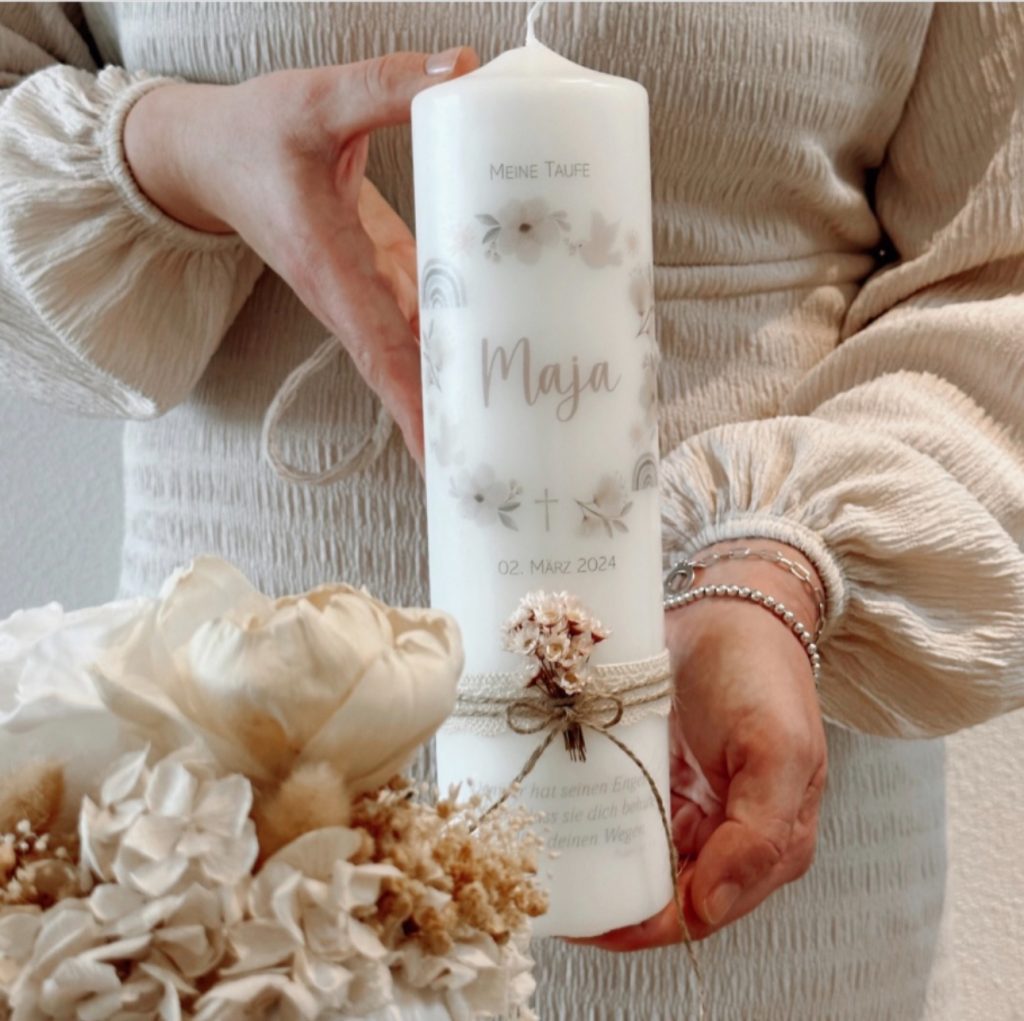 Ob zur Taufe, Hochzeit, zum Geburtstag oder einfach als liebevolles Geschenk: Unsere Kerzen vereinen Design, Qualität und persönliche Gestaltungsmöglichkeiten.