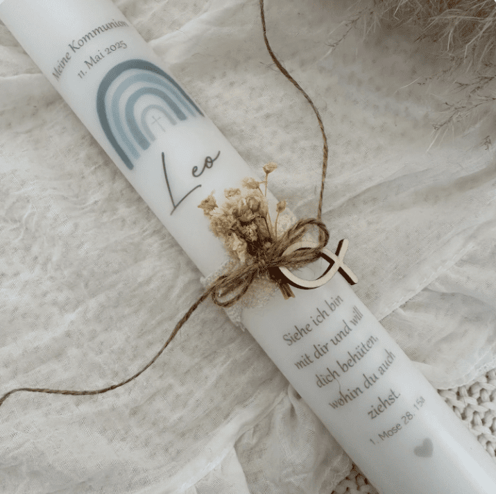 Von klassisch weiß über zarte Naturtöne bis hin zu liebevoll gestalteten Motiven – unsere Kerzen sind so individuell wie du. Du kannst aus verschiedenen Varianten wählen: mit Spruch, personalisiertem Anhänger, Trockenblumen oder schlicht und pur. Dabei achten wir auf hochwertige Materialien, saubere Verarbeitung und ein Design, das sich dezent in jedes Wohnambiente einfügt.