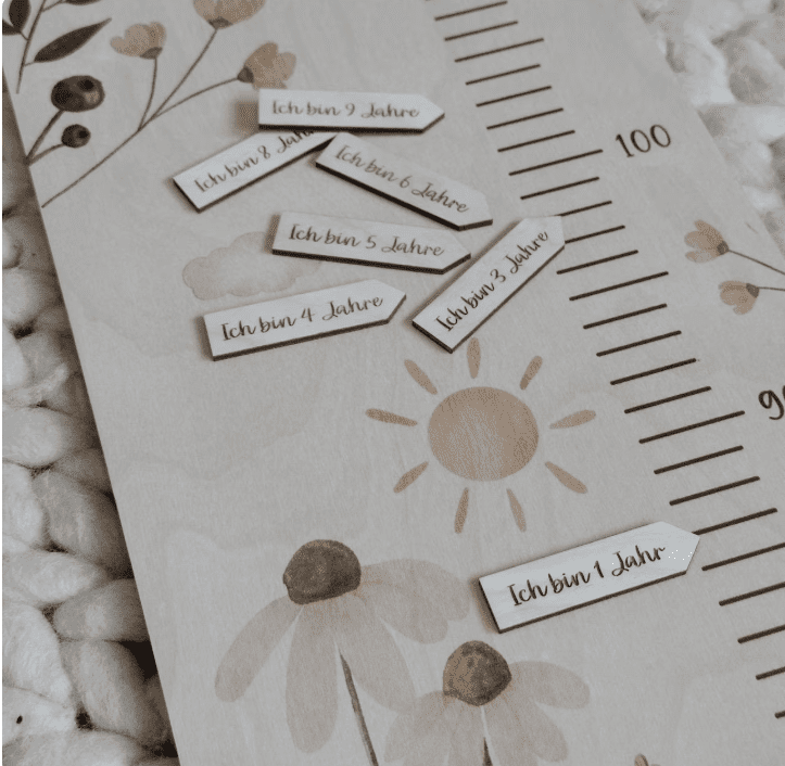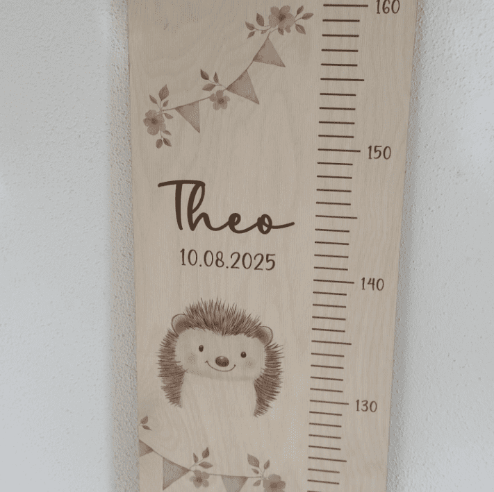 Mit deinem Wunschnamen und Geburtsdatum personalisiert, entsteht ein einzigartiges Erinnerungsstück, das all die kleinen und großen Entwicklungsschritte festhält. Jeder Zentimeter erzählt ein Stück Kindheitsgeschichte – voller Stolz, Freude und Magie.