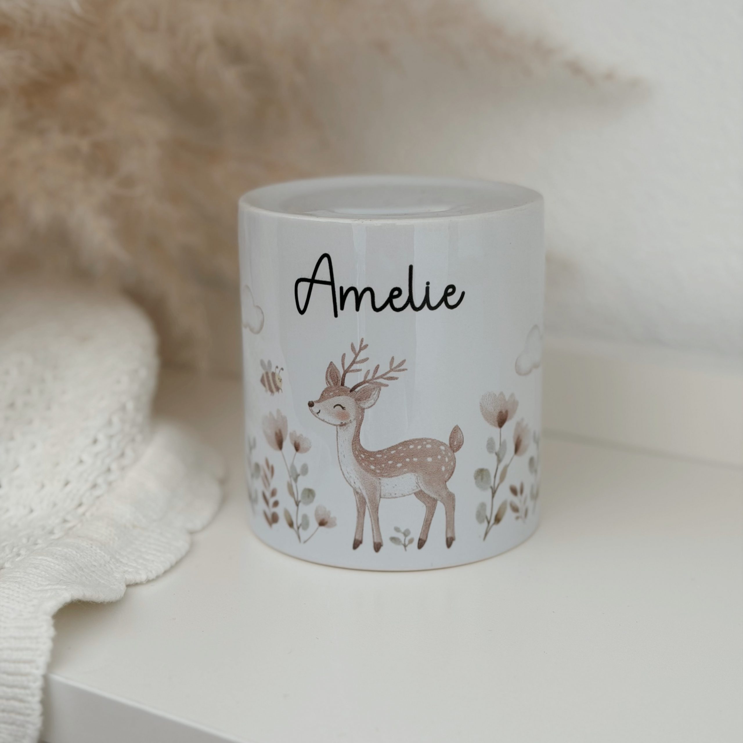 Manche Geschenke bleiben. Unsere personalisierte Spardose mit liebevollem Naturmotiv (Bär, Reh oder Fuchs) ist genau so ein Herzensstück – zeitlos schön, individuell gestaltet und voller Bedeutung.