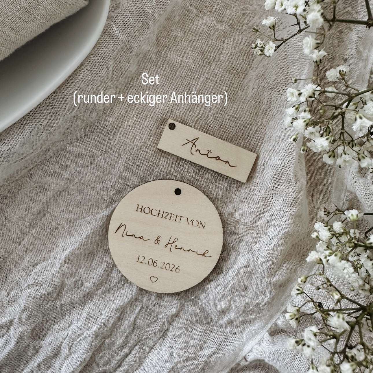 Ob als Platzkarte, Gastgeschenk, süßes Andenken an diesen Tag oder liebevolles Detail, diese personalisierten Anhänger verleihen deiner Feier einen besonderen, persönlichen Touch.