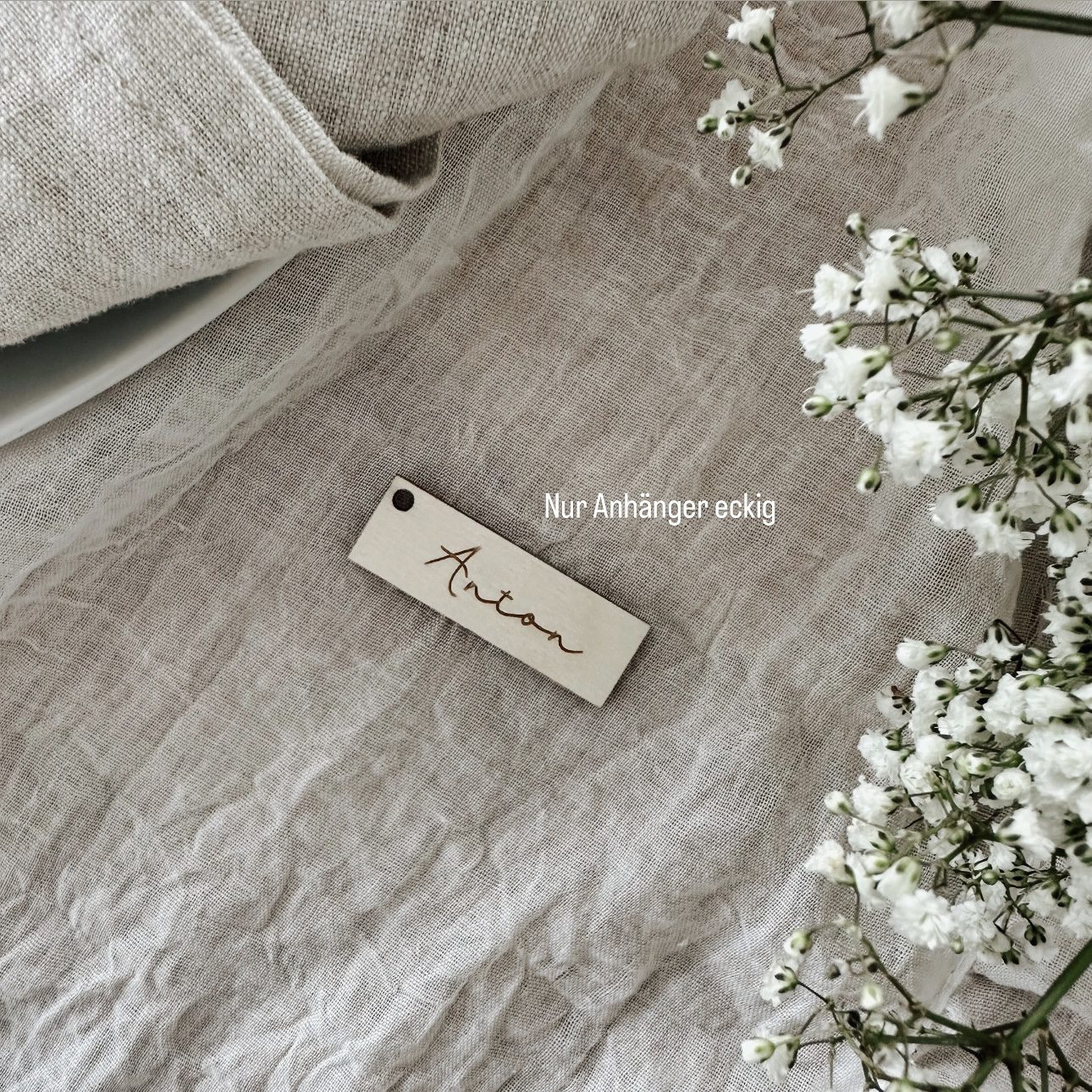 – nur Platzkärtchen (eckiger Anhänger mit Name)