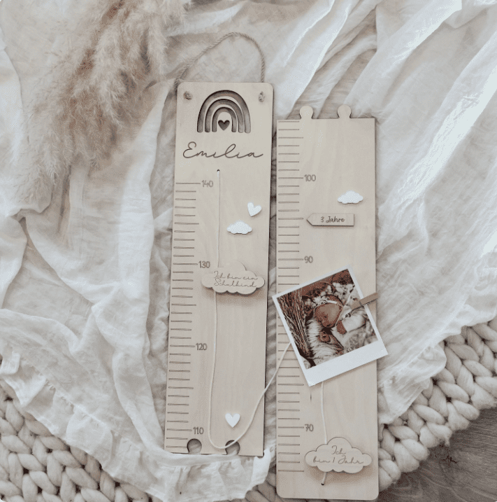 nsere wunderschöne personalisierte Messlatte aus Holz ist weit mehr als nur eine klassische Messlatte: Sie hält die wichtigsten Wachstumsmomente deines Kindes fest und wird gleichzeitig zu einem traumhaften, zeitlosen Dekostück im Kinderzimmer. Mit viel Liebe gefertigt und personalisiert, entsteht ein Erinnerungsstück, das über viele Jahre begleitet.