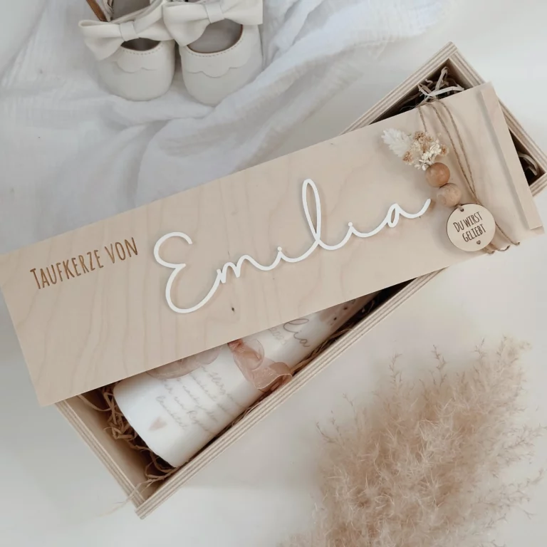 Die Taufe ist ein bedeutungsvoller Moment – mit unseren Taufkerzen setzt du ein stilvolles Zeichen. Wähle aus neutralen Naturtönen, zarten Waldmotiven und optionalen Taufsprüchen, um eine herzliche Atmosphäre zu schaffen.